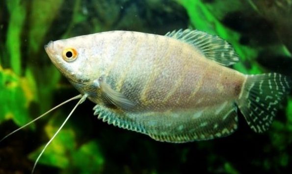 Платиновый Гурами, научное наименование Trichopodus trichopterus, принадлежит семейству Osphronemidae. Красивая цветовая разновидность Голубого Гурами. Выведен искусственно, путём постепенного закрепления определённых черт на протяжение нескольких поколений. Не смотря на то, что данный вид является результатом селекции, он смог сохранить выносливость и неприхотливость своего предшественника.