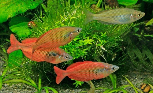 Однак не варто селити з ними риб вуалевих форм, адже їх великі плавники, швидше за все, будуть покусані. Тому краще не підсаджувати до райдужниць золотих рибок.