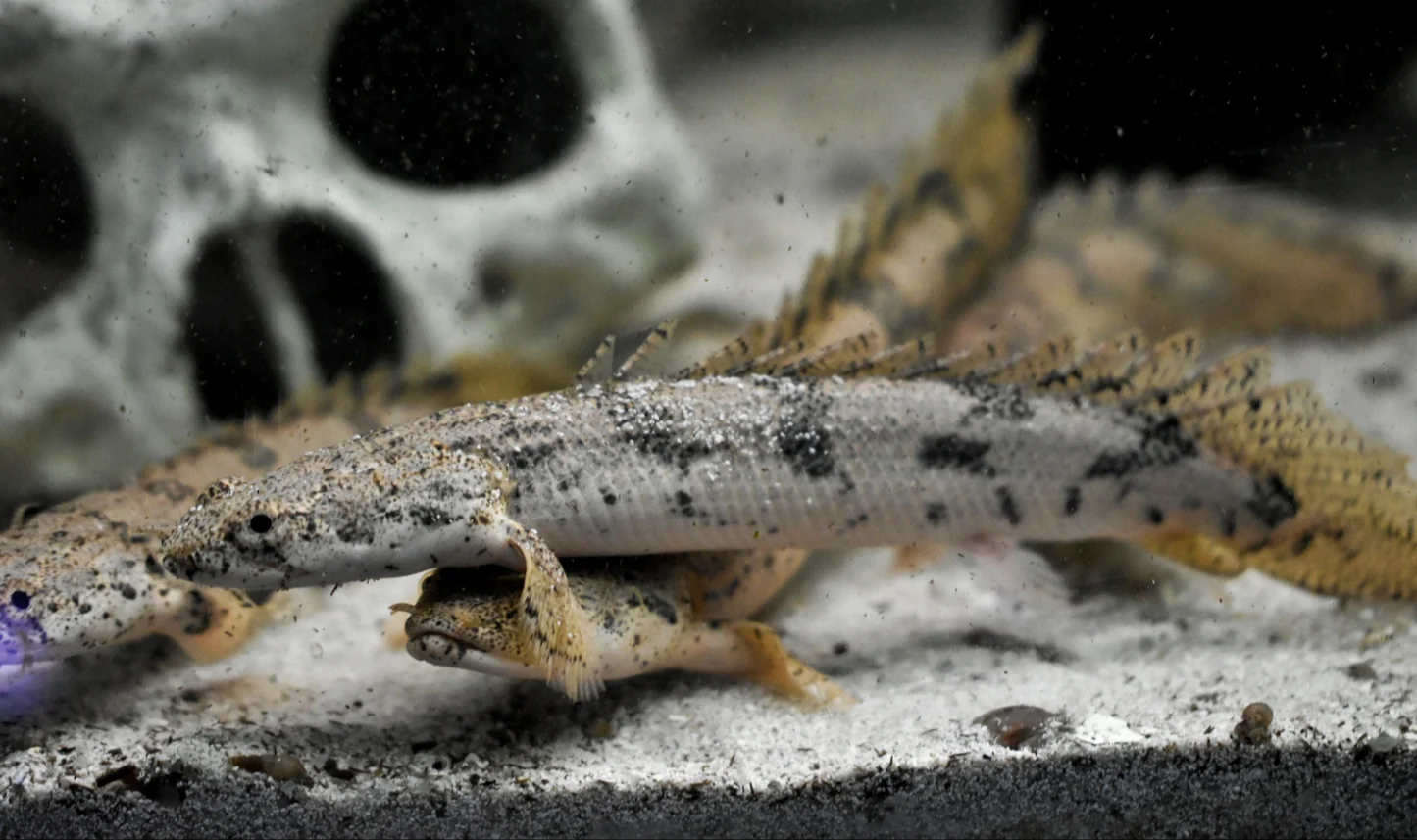 При температурі води +26 ° С інкубація ікри займає близько 4 днів, після чого на світ з’являються личинки із зовнішніми зябрами, що нагадують молодь тритонів. Зростають вони швидко і нерівномірно. Слід практично щодня відсаджувати більших особин, інакше вони можуть покусати своїх менш високих побратимів.